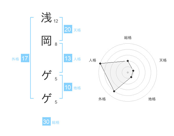 浅岡 ゲゲさんの天格は20画の1点!