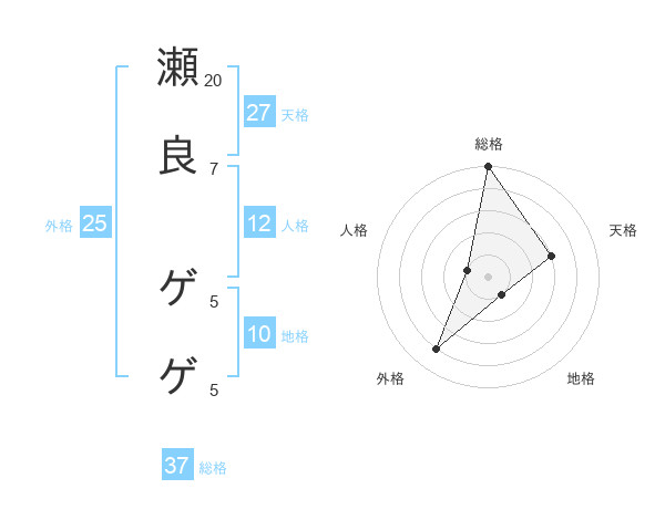 瀬良 ゲゲさんを姓名の画数から五運を鑑定