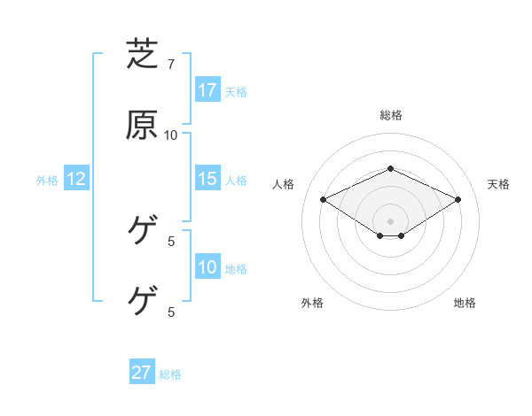 芝原 ゲゲさんを姓名の画数から五運を鑑定