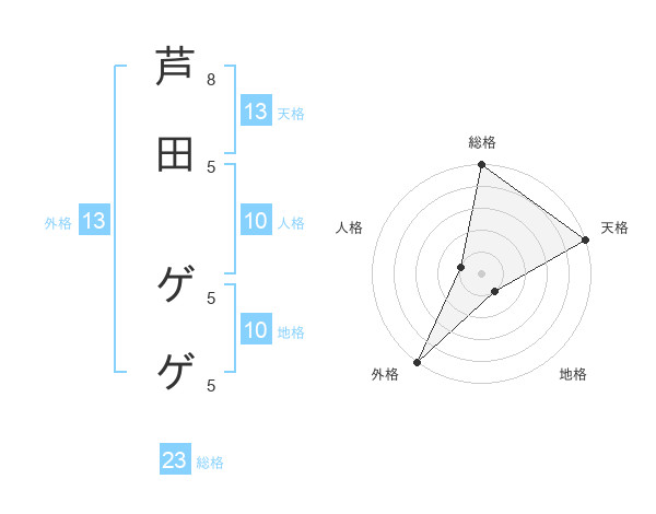 芦田 ゲゲさんの天格は13画の5点!