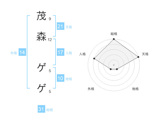 茂森 ゲゲさんを姓名の画数から五運を鑑定