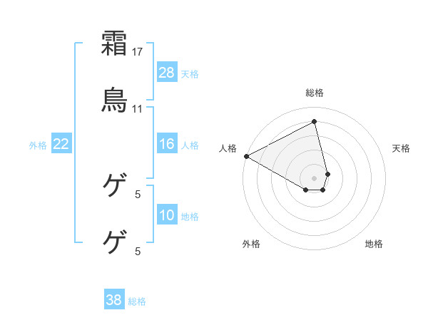 霜鳥 ゲゲさんの総格は38画の4点!