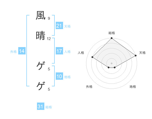 風晴 ゲゲさんの総格は31画の5点!