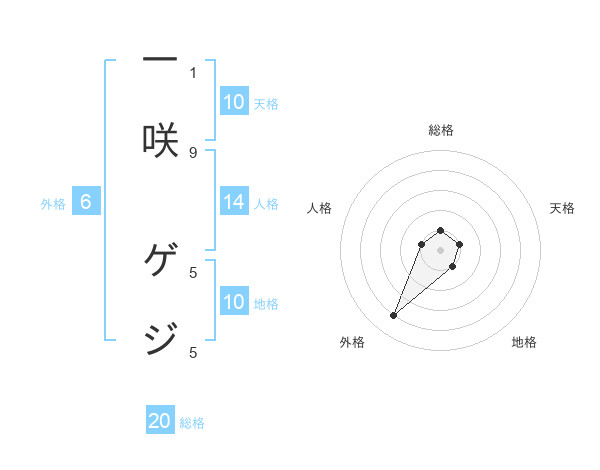 一咲 ゲジさんの総格は20画の1点!