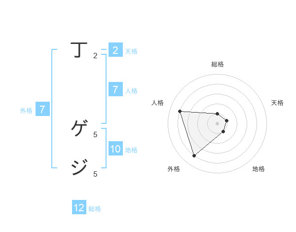 丁 ゲジさんを姓名の画数から五運を鑑定