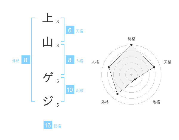 上山 ゲジさんを姓名の画数から五運を鑑定