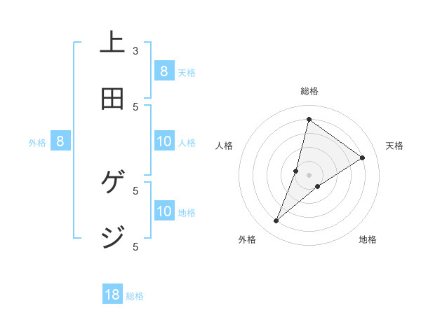 上田 ゲジさんを姓名の画数から五運を鑑定