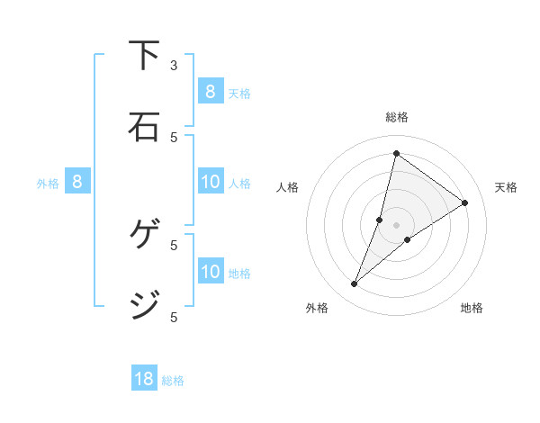 下石 ゲジさんを姓名の画数から五運を鑑定