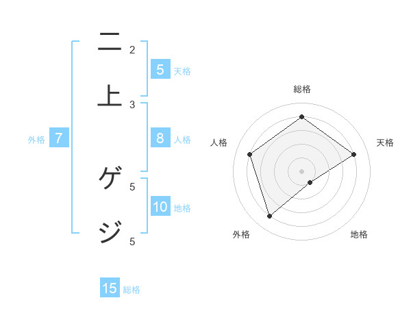 二上 ゲジさんを姓名の画数から五運を鑑定