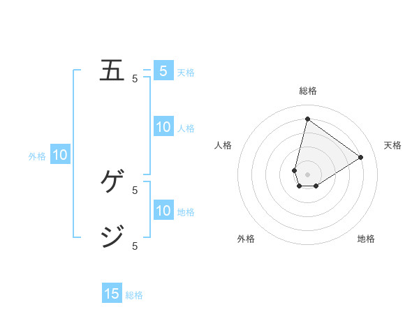 五 ゲジさんの総格は15画の4点!