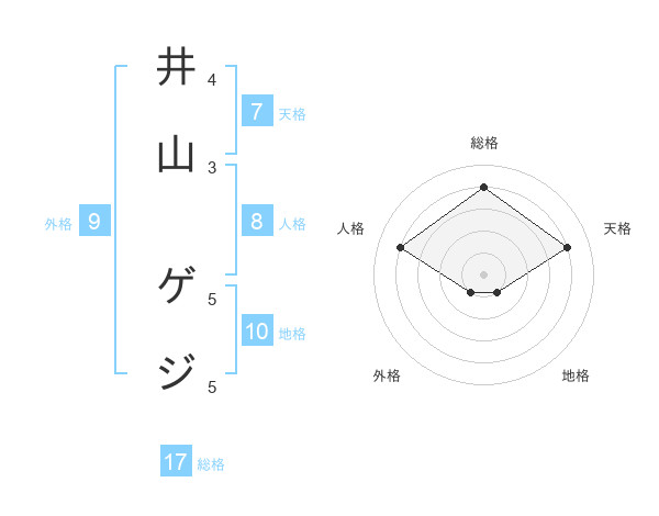 井山 ゲジさんを姓名の画数から五運を鑑定
