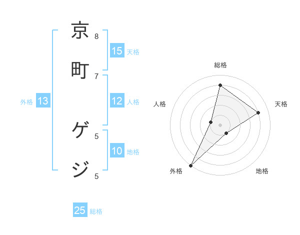 京町 ゲジさんの天格は15画の4点!