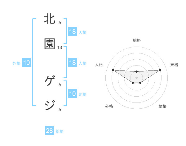 北園 ゲジさんの天格は18画の4点!