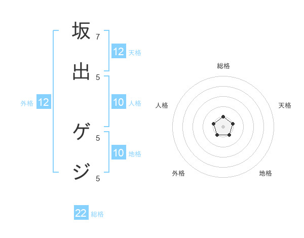 坂出 ゲジさんの総格は22画の1点!