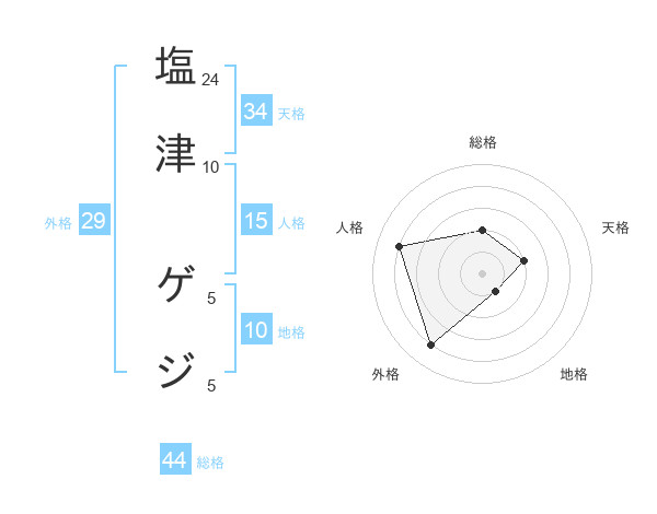 塩津 ゲジさんを姓名の画数から五運を鑑定