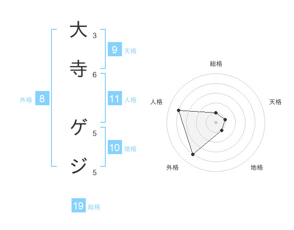 大寺 ゲジさんを姓名の画数から五運を鑑定