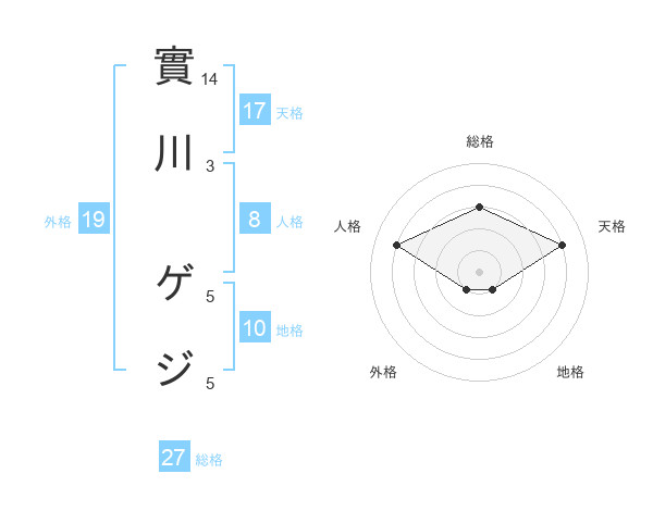 實川 ゲジさんの総格は27画の3点!
