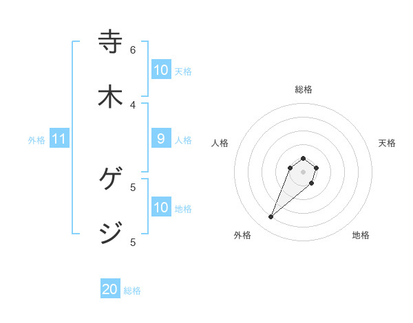 寺木 ゲジさんを姓名の画数から五運を鑑定