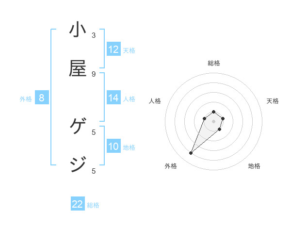 小屋 ゲジさんの総格は22画の1点!