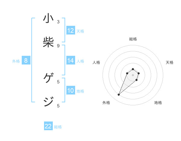 小柴 ゲジさんの総格は22画の1点!