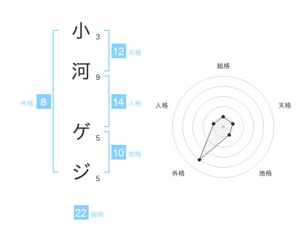 小河 ゲジさんを姓名の画数から五運を鑑定