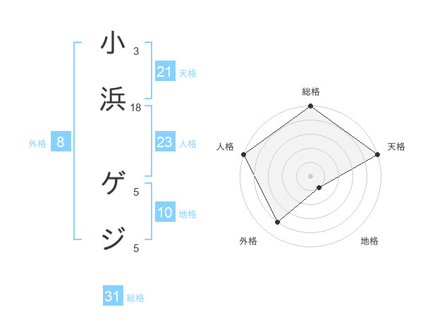 小浜 ゲジさんの総格は31画の5点!