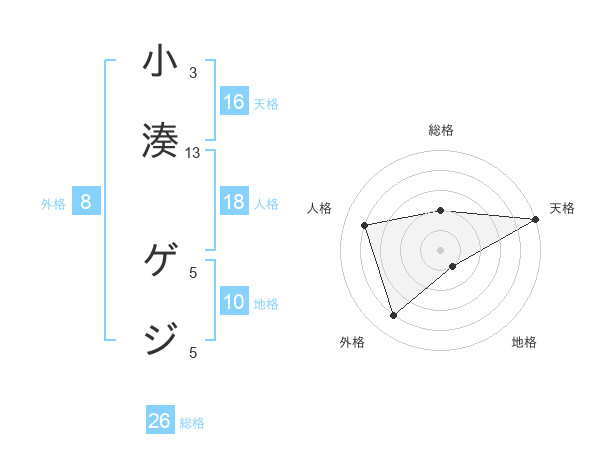 小湊 ゲジさんの総格は26画の2点!