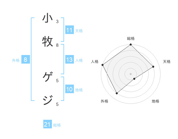 小牧 ゲジさんの総格は21画の5点!