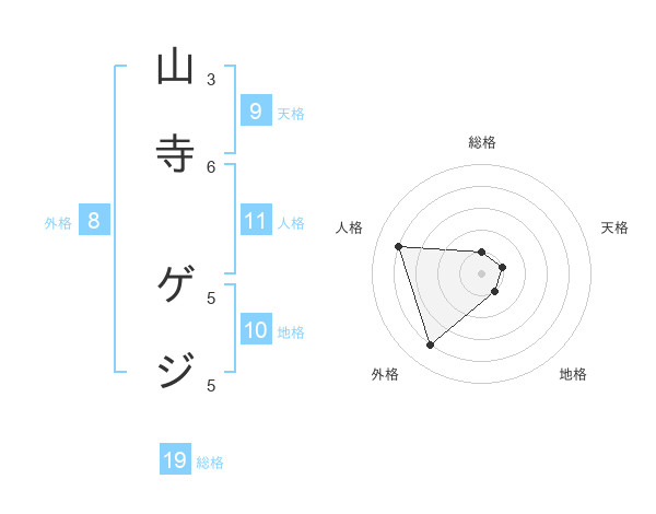 山寺 ゲジさんを姓名の画数から五運を鑑定