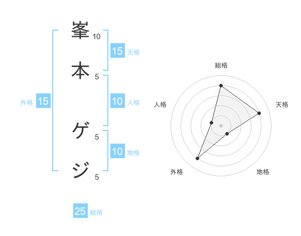 峯本 ゲジさんの総格は25画の4点!