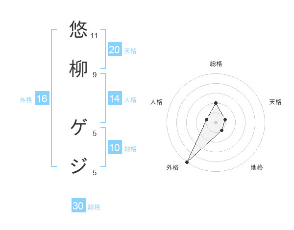 悠柳 ゲジさんを姓名の画数から五運を鑑定