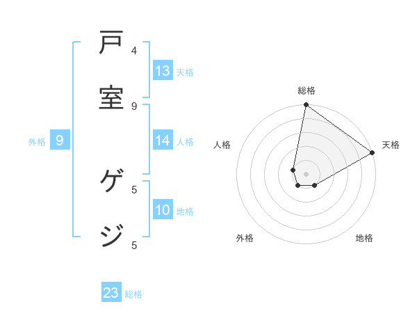 戸室 ゲジさんを姓名の画数から五運を鑑定