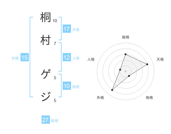 桐村 ゲジさんの名前の鑑定結果は!