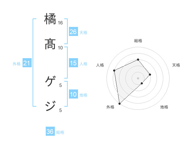 橘髙 ゲジさんを姓名の画数から五運を鑑定
