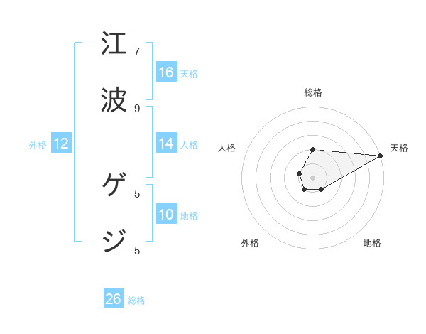 江波 ゲジさんを姓名の画数から五運を鑑定