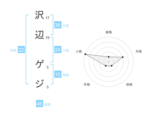 沢辺 ゲジさんの総格は46画の1点!