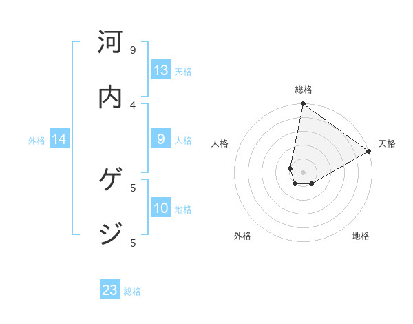 河内 ゲジさんの総格は23画の5点!