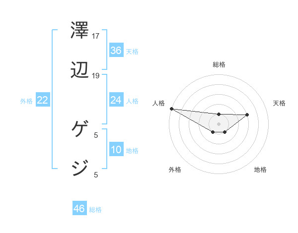 澤辺 ゲジさんを姓名の画数から五運を鑑定