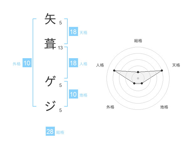 矢葺 ゲジさんを姓名の画数から五運を鑑定