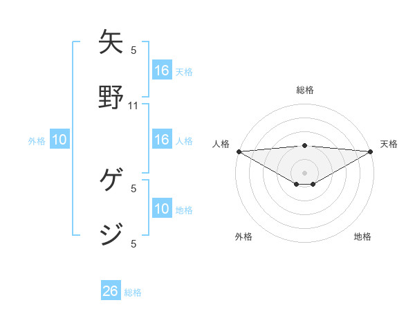 矢野 ゲジさんを姓名の画数から五運を鑑定