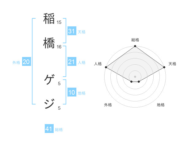 稲橋 ゲジさんを姓名の画数から五運を鑑定