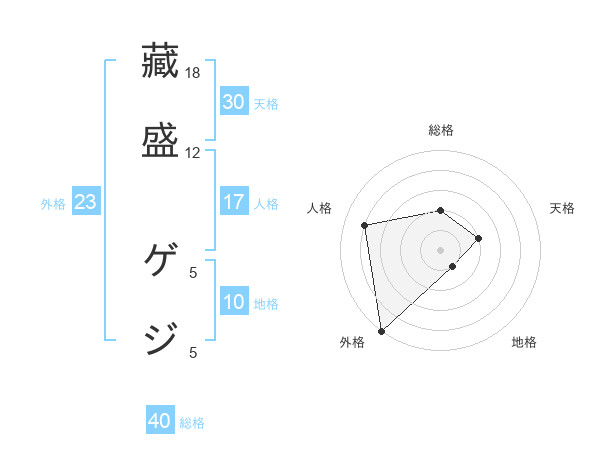 藏盛 ゲジさんを姓名の画数から五運を鑑定