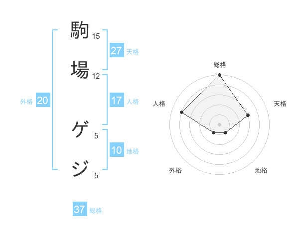駒場 ゲジさんを姓名の画数から五運を鑑定