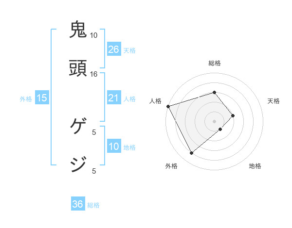 鬼頭 ゲジさんを姓名の画数から五運を鑑定