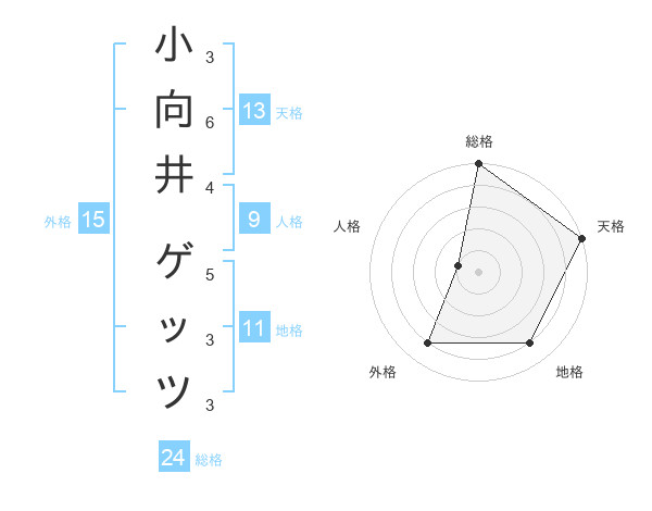 小向井 ゲッツさんを姓名の画数から五運を鑑定