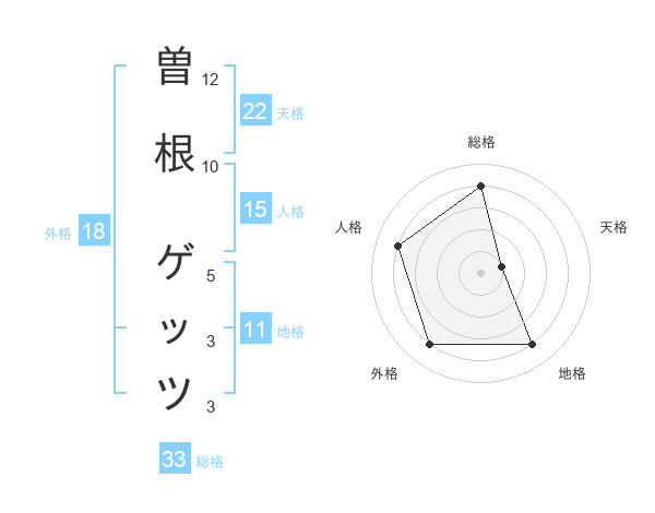 曽根 ゲッツさんを姓名の画数から五運を鑑定