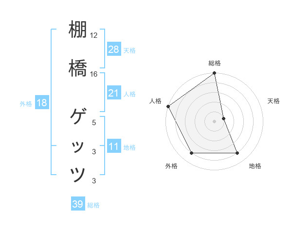 棚橋 ゲッツさんを姓名の画数から五運を鑑定