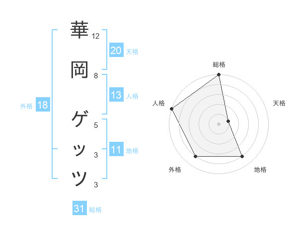 華岡 ゲッツさんの天格は20画の1点!