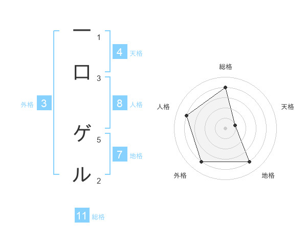 一口 ゲルさんの総格は11画の4点!