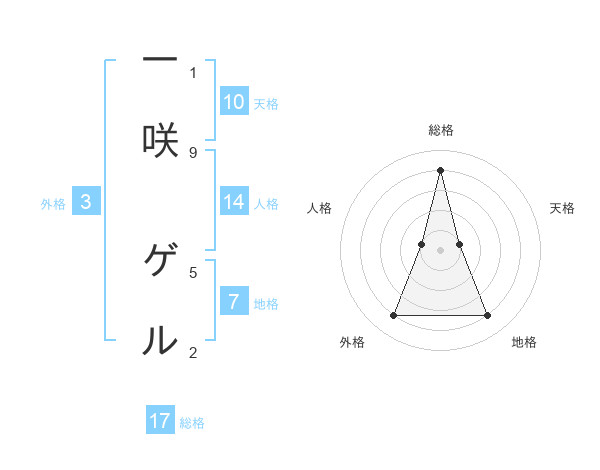 一咲 ゲルさんの総格は17画の4点!